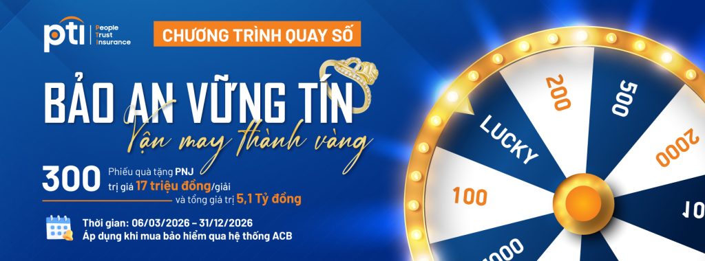 Sự tin tưởng của Quý khách chính là động lực để PTI và ACB không ngừng nâng cao chất lượng dịch vụ. Hãy tham gia ngay để nhận được sự bảo vệ vững chắc và đón nhận vận may thành vàng!Mọi thắc mắc xin vui lòng liên hệ Hotline 1900 54 54 75 hoặc truy cập https://www.pti.com.vn/